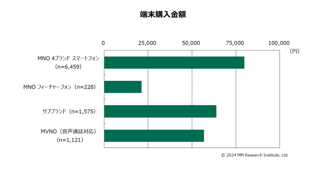 MNO4ブランドのスマートフォン利用者の月額利用料金は5,210円、楽天モバイルを除くMNO のフィーチャーフォン利用者は2,575円となった。サブブランド利用者の月額利用料金は3,226円、MVNO利用者の月額利用料金は2,001円となった。2023年に登場した各社の新プランが上昇に寄与したと分析する。