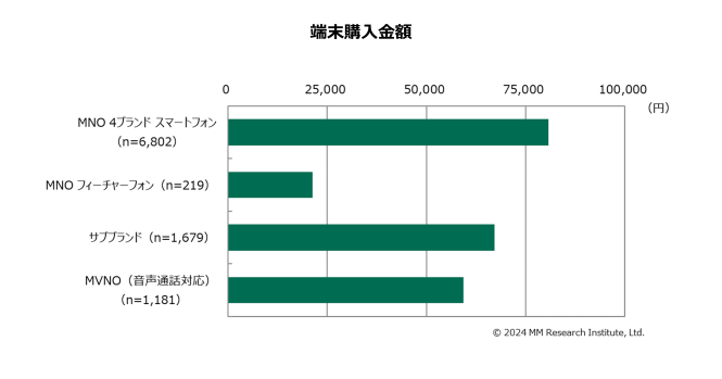 MNO 4ブランドのスマートフォン利用者では80,777円(前回調査比871円増)、MNOのフィーチャーフォン利用者は21,279円(同81円減)、サブブランド利用者は67,216円(同3,289円増)、MVNO利用者は59,285円(同2,416円増)だった。